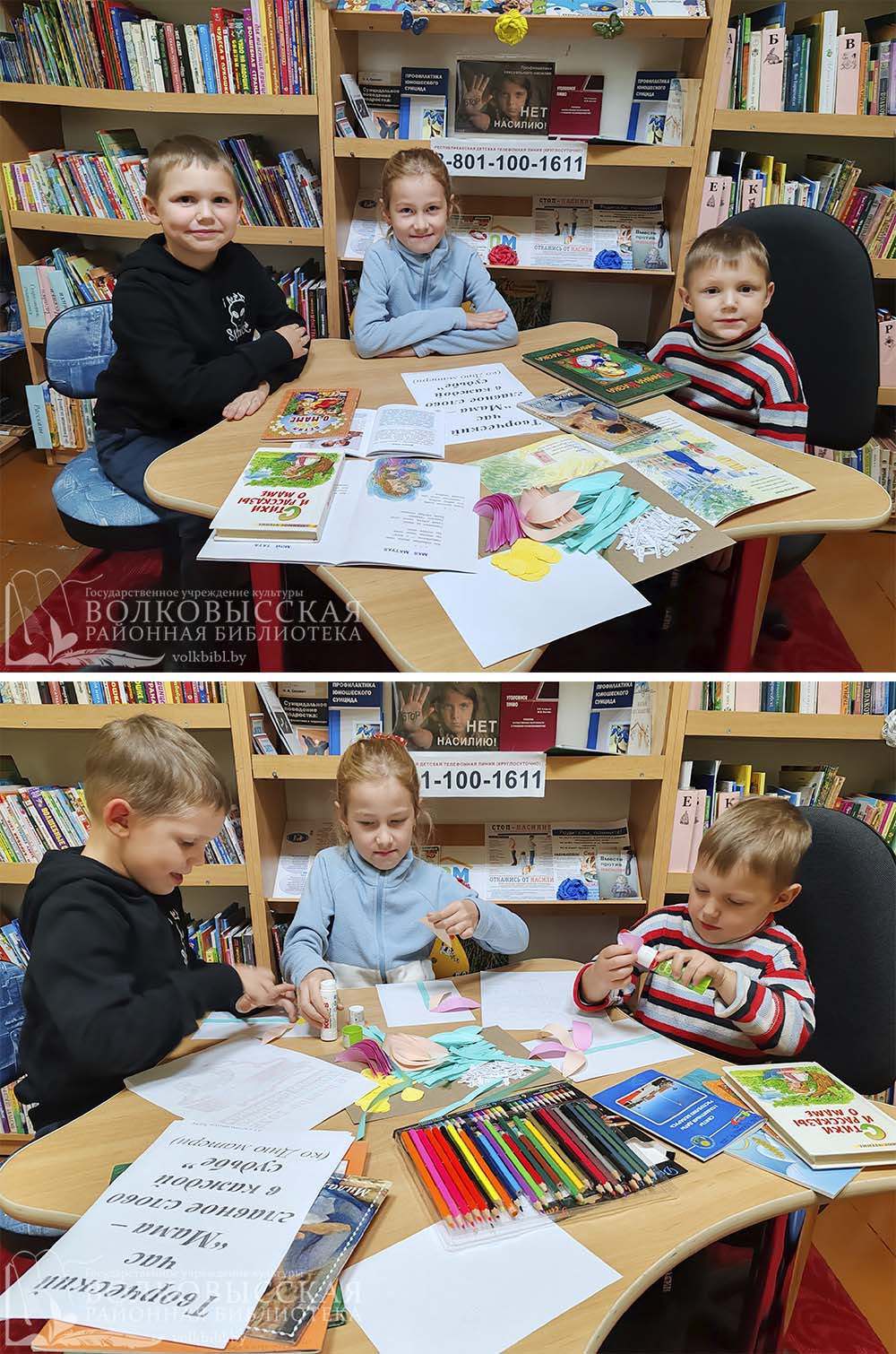 Библиотекарь рассказала детям о том, почему в Беларуси День Матери отмечают 14 октября, поговорили об истории праздника и как отмечают этот день в других странах. Затем ребята с удовольствием мастерили открытку с объемным ярким цветком из бумаги. Внутри каждой открытки для мам было написано пожелание. Во время творческой работы дети общались и рассказывали про своих мам: как их зовут, какая у них профессия, какие они любимые и добрые.