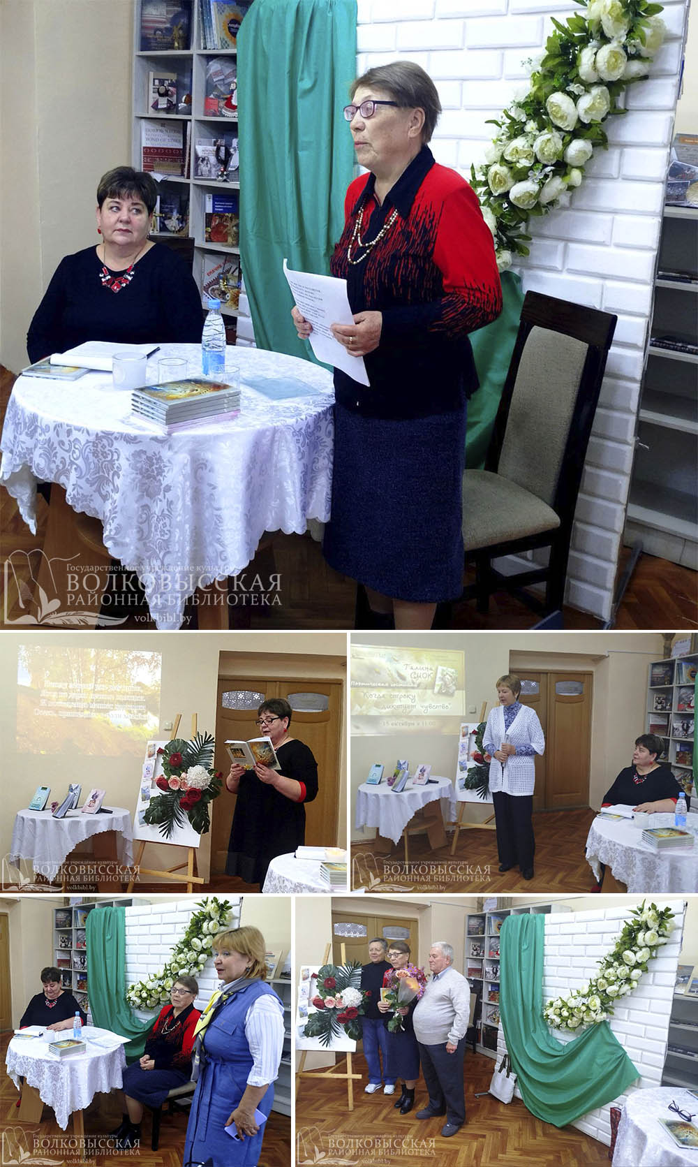 15 октября в районной библиотеке состоялась поэтическая гостиная «Когда строку диктует чувство», приуроченная к презентации четвертого сборника «Торопливое время» местной поэтессы Галины Смок. Мероприятие посетили друзья, родные и близкие Галины Ивановны.