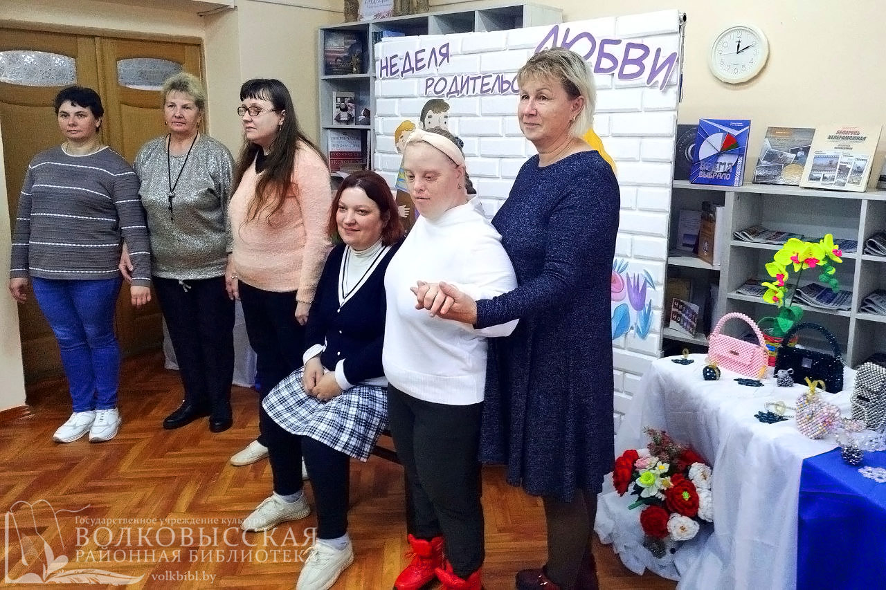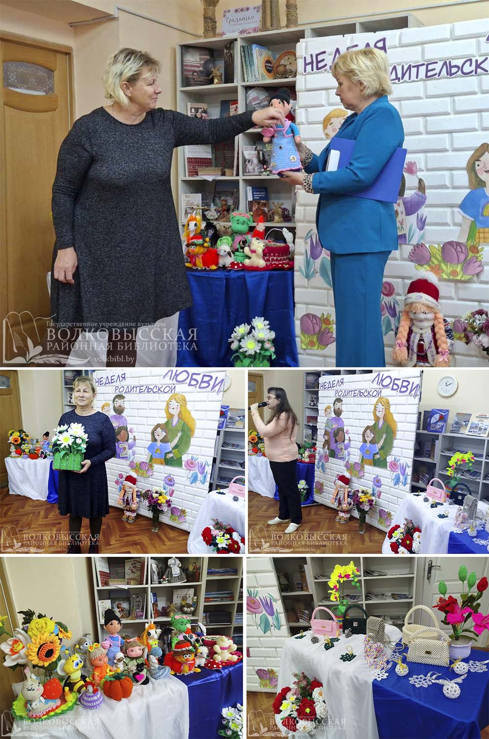 На Неделе родительской любви в районной библиотеке прошел марафон творчества «Венец всех ценностей – семья». На мероприятии присутствовали подопечные ТЦСОН со своими родителями. В этот день родители слышали в свой адрес множество добрых и приятных слов. Мамам представилась возможность показать свой талант: прочесть стихи собственного сочинения и поделиться своими увлечениями. Также в библиотеке была организована выставка работ Стецкевич Елены Станиславовны в технике вязания крючком и Шляхтун Татьяны Владимировны в технике бисероплетение.
