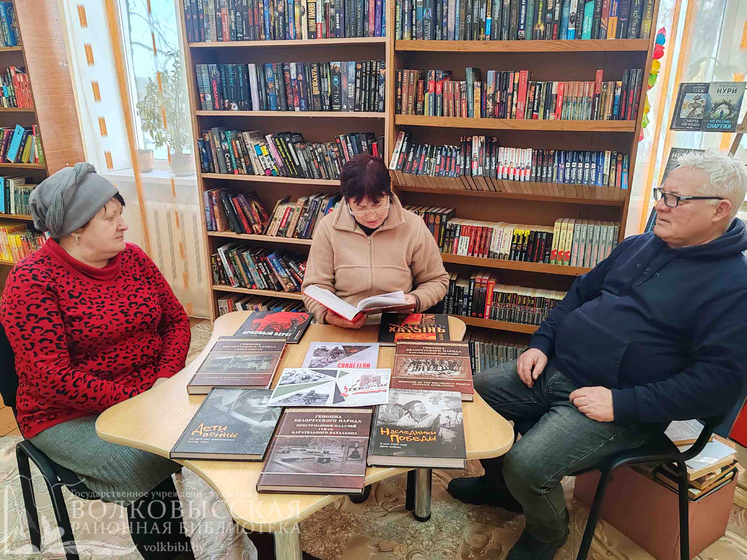 Библиотекарь с читателями вели беседу об исторических фактах и событиях периода Великой Отечественной войны, жертвах политики геноцида и увековечении их памяти, о необходимости сохранить историческую память о героическом прошлом белорусского народа. Также библиотекарь познакомила присутствующих с литературой о Великой Отечественной войне, о геноциде белорусского народа, о подвигах людей на фронтах и в тылу.