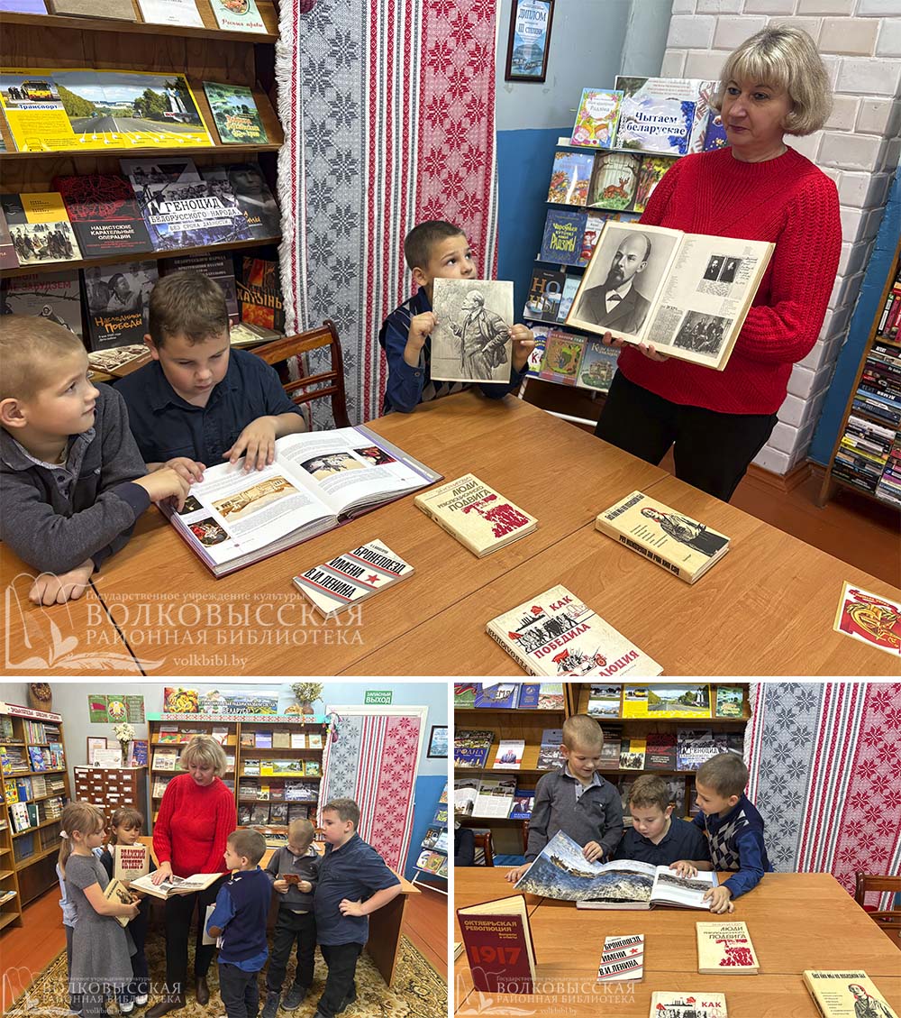 Библиотекарь рассказала присутствующим об истории главного праздника СССР, о событиях 7 ноября 1917 года. Сохранение в Беларуси 7 ноября в качестве государственного праздника – это не попытка вернуть или сохранить прошлое. Это свидетельство того, что прошлое забывать нельзя. Ребята узнали о событиях начала прошлого века: почему рабочие и крестьяне активно участвовали в революционных событиях, как в революции участвовали дети и что за личность Владимир Ильич Ленин. Участники мероприятия активно отвечали на вопросы викторины «Знатоки истории» и придумывали слова из слова «Революция».