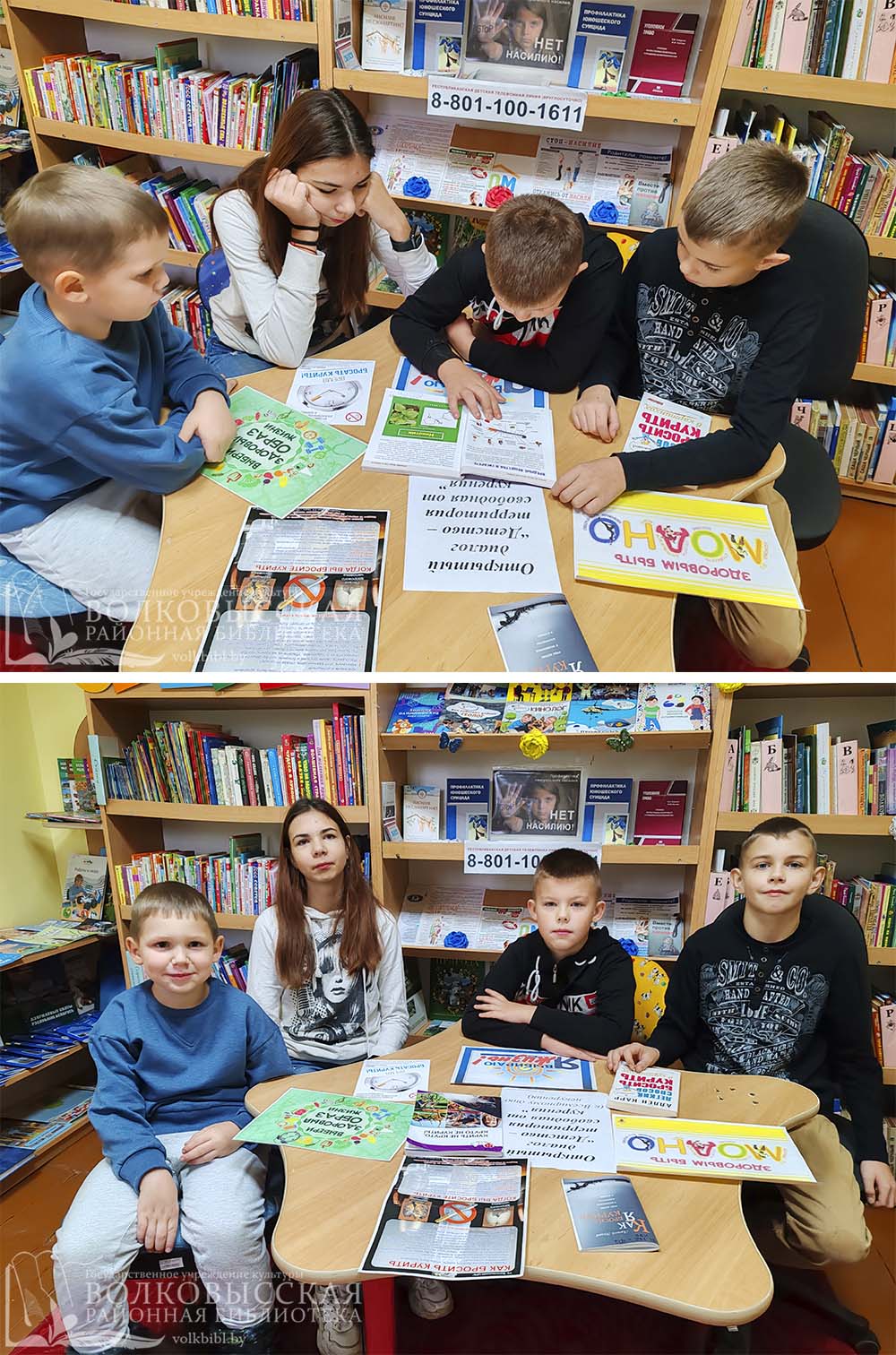 В целях профилактики табакокурения среди несовершеннолетних в филиале “Войтковичская сельская библиотека” 22 октября прошел открытый диалог “Детство – территория свободная от курения”. Библиотекарь рассказала ребятам о том, сколько людей в мире умирает за один год от последствий курения, какие заболевания вызывает эта вредная привычка, какой вред приносит детям, которые не только курят сами, но и находятся рядом с курящими людьми.