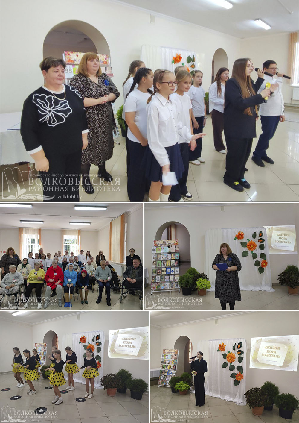 3 октября с праздничной открыткой «Жизни пора золотая» пожилых людей, проживающих в Волковысском социальном пансионате «Теолин», поздравили сотрудники Волковысской районной библиотеки и ребята из Красносельской СШ.