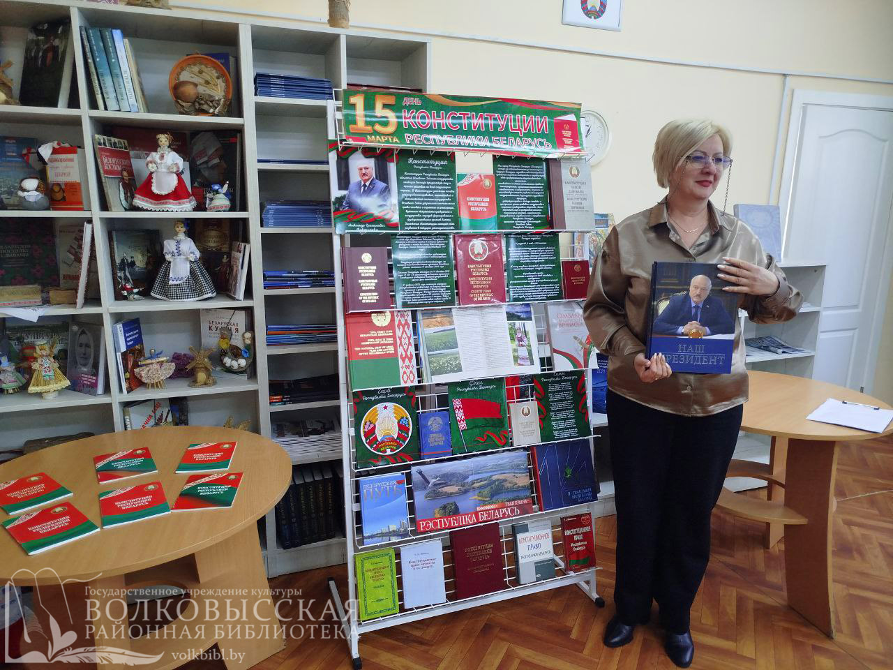 12 марта в рамках проекта «Подросток и закон: правовые знания» в Волковысской районной библиотеке прошел открытый диалог «Конституция – Основной Закон государства». На мероприятии присутствовали учащиеся 8 класса СШ №3 г. Волковыска.