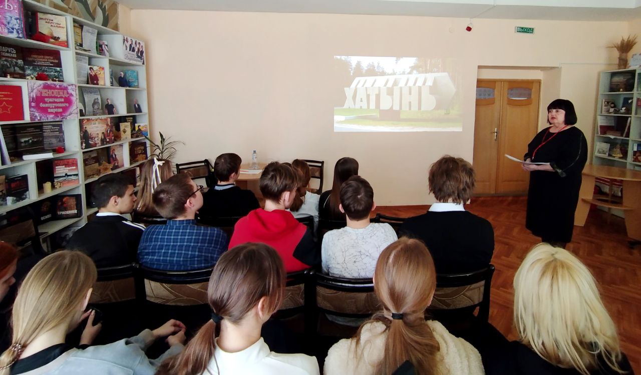 Были просмотрены хроника-документальный фильм «И будет жить Хатынь», отрывок из художественного фильма «Иди и смотри». В конце встречи ребята почтили память погибших минутой молчания.