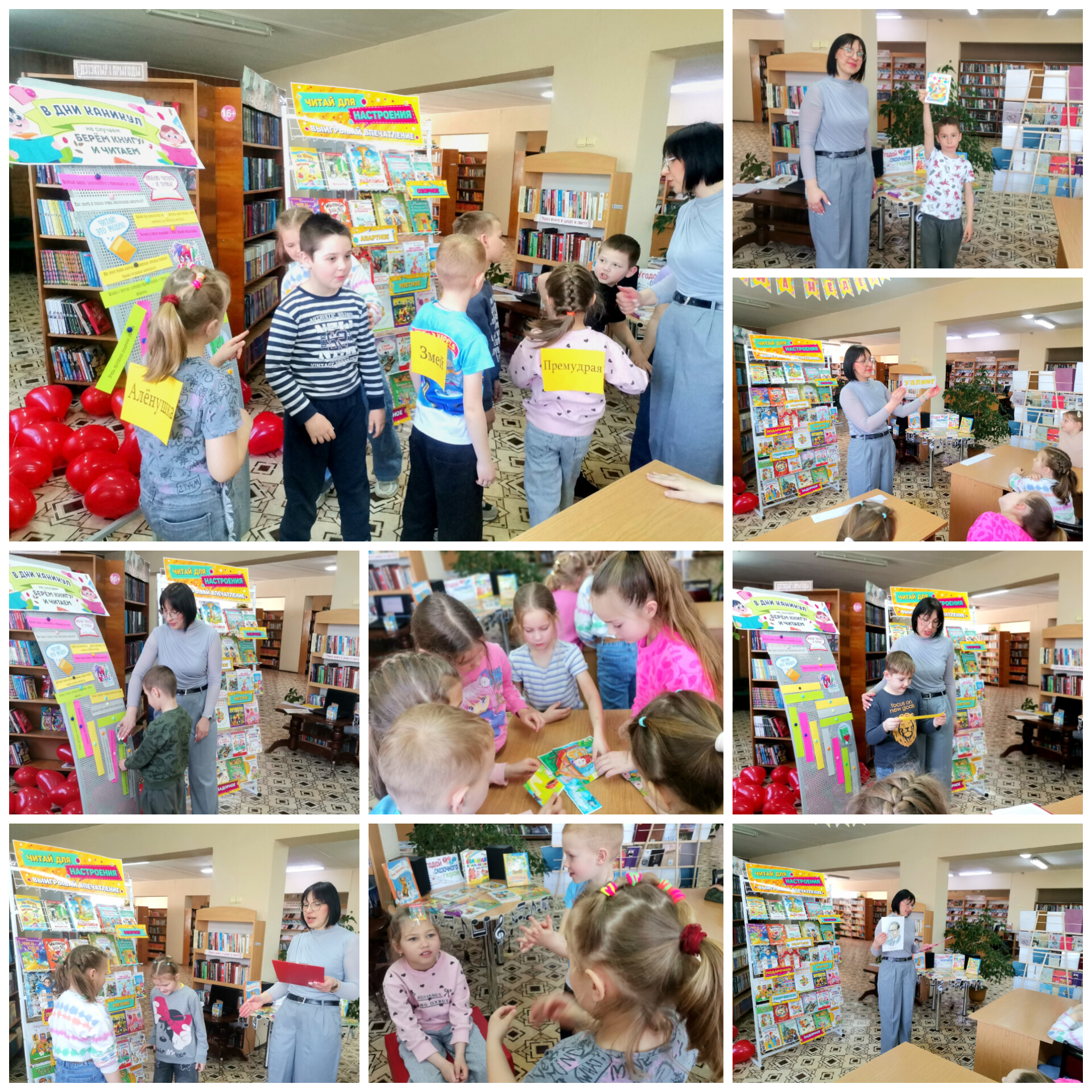 Дети отвечали на вопросы литературной викторины «Русские сказки и не только», играли в игры «Доскажи словечко», «Кручу, верчу – запутать хочу». «Игралочка – приз хваталочка», «Найди свою пару», «Вместе пропоём и книгу мы найдём», «Селфи угадай-ка».
