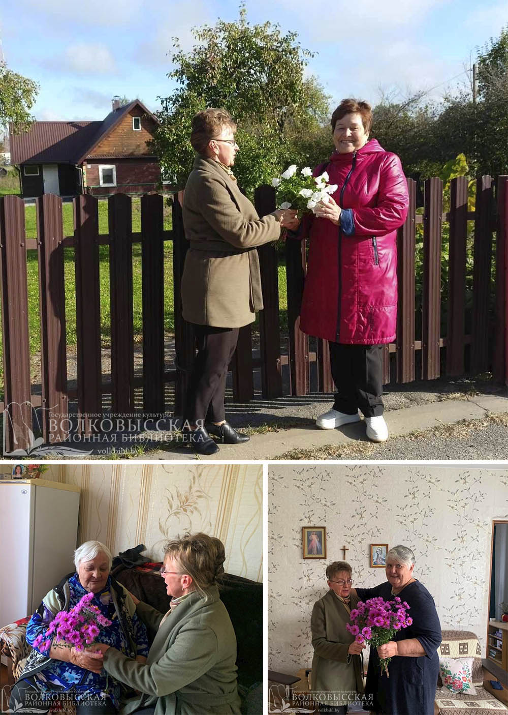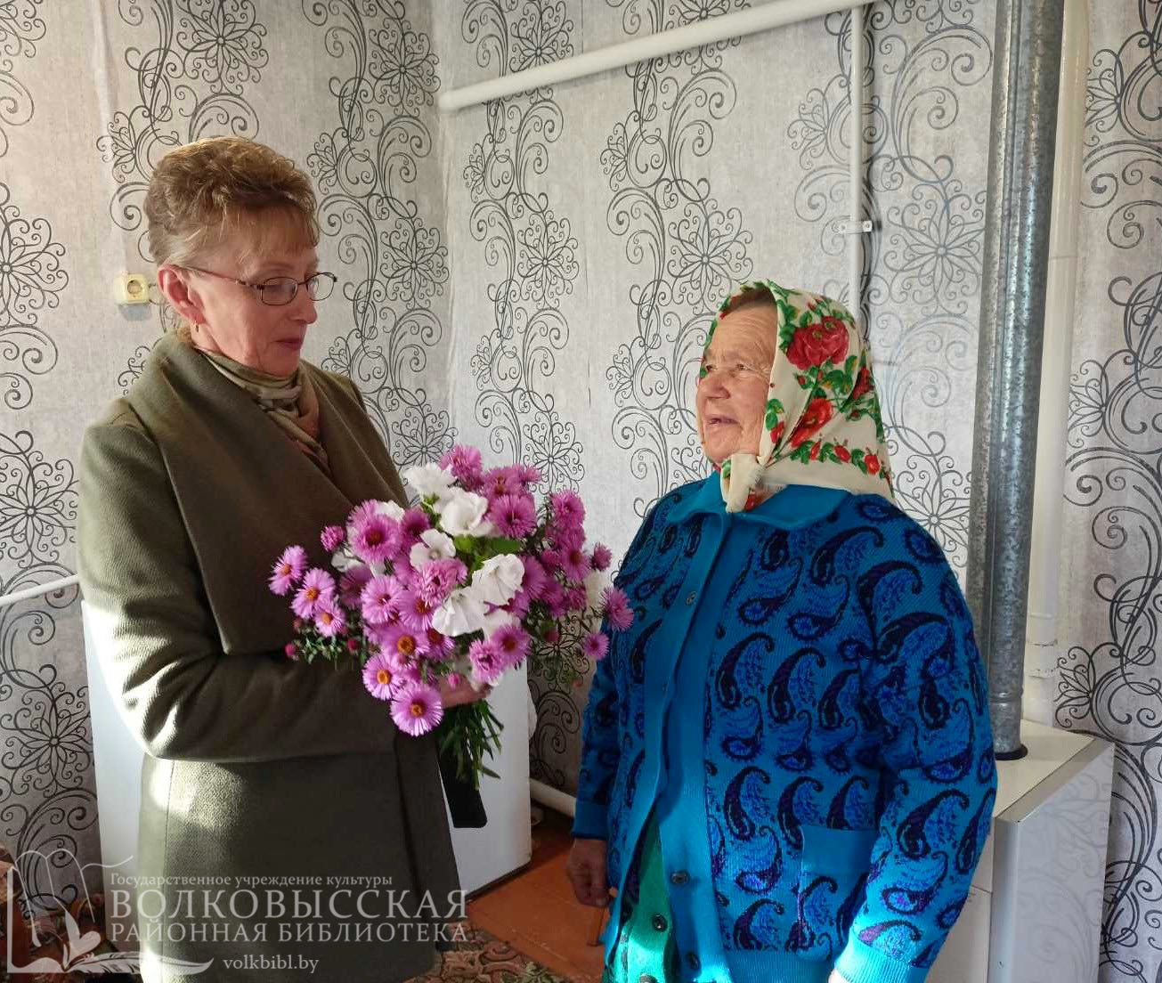 Библиотекарь филиала «Верейковская сельская библиотека» посетила читателей «золотого» возраста с визитом-поздравлением «От сердца к сердцу», чтобы выразить признательность за многолетнюю преданность библиотеке, за активность и мудрость и сердечно поздравить с праздником, вручив цветы и обменяв прочитанные книги.