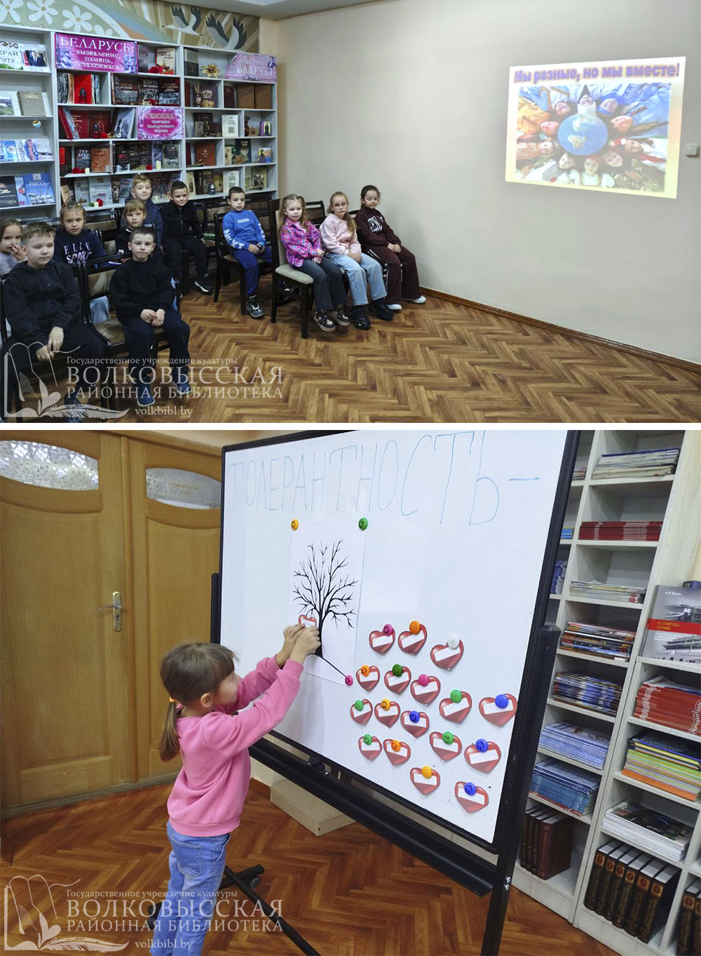 В ходе мероприятия библиотекарь познакомила ребят с понятием «толерантность», рассказала о происхождении термина, о том, какие черты характера присущи толерантной личности. Поиграли в игру «Вежливые слова», разбирали и обсуждали ситуации о добрых поступках.