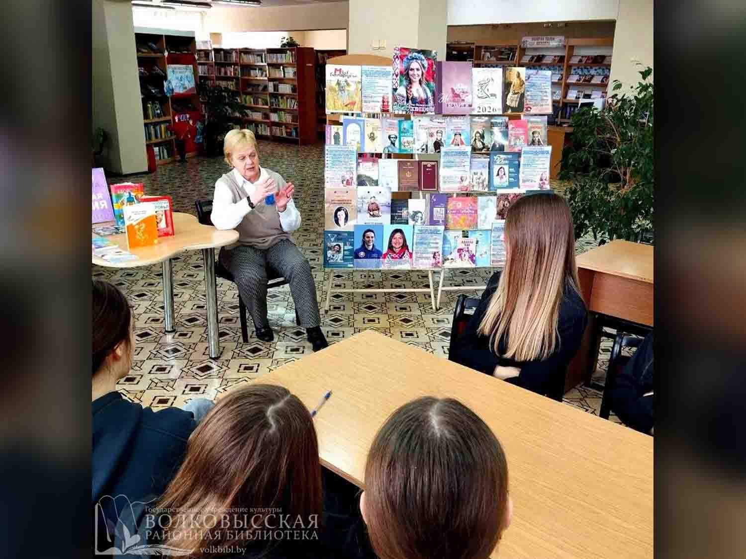 26 февраля в филиале «Городская библиотека №46», в рамках проекта «Женщины.bу», для учащихся 10-х классов СШ №7 г. Волковыска состоялся час информации «Здоровая женщина – здоровая нация» с участием заведующего женской консультацией УЗ «Волковысская ЦРБ» Запасник Елены Михайловны.