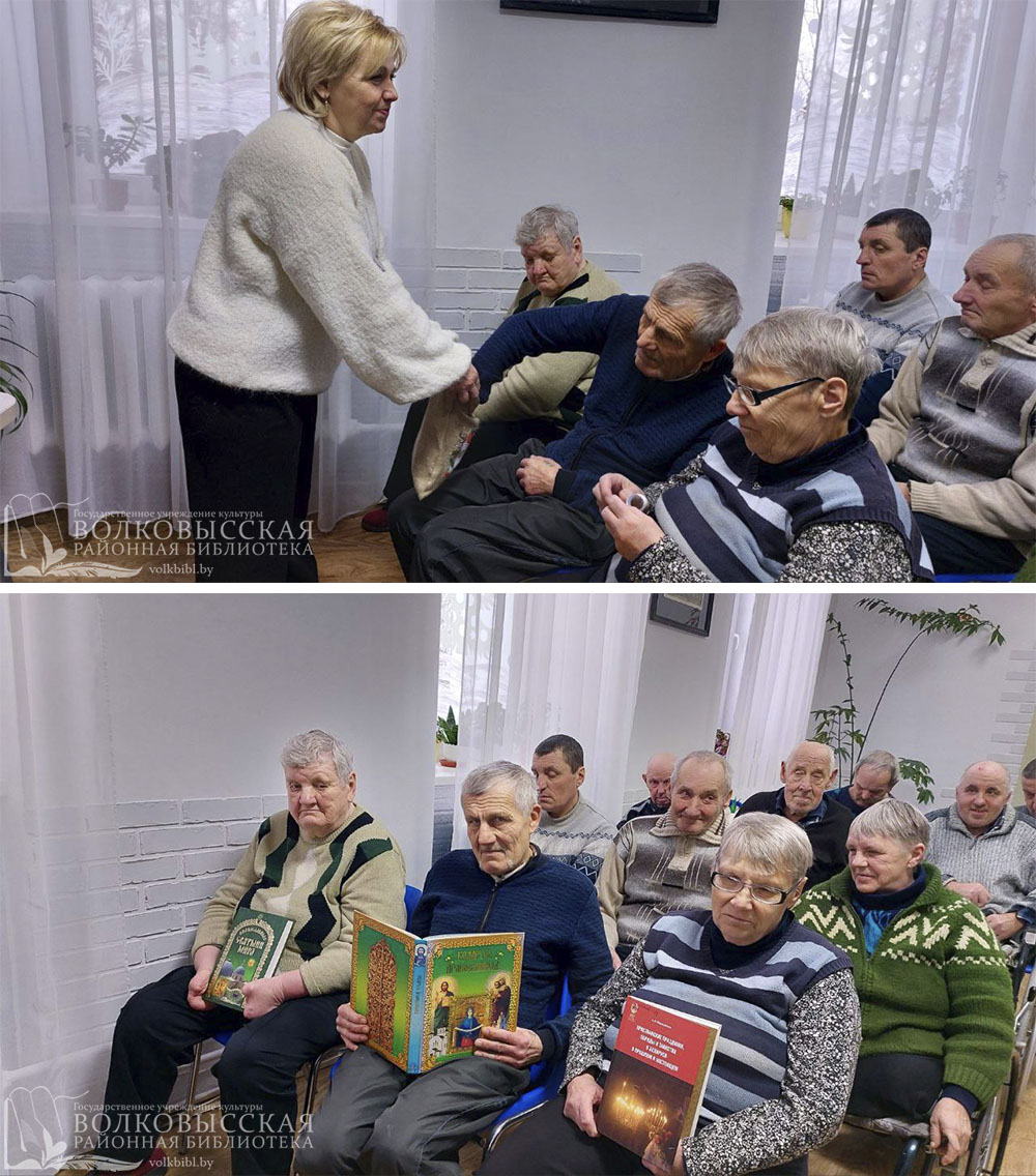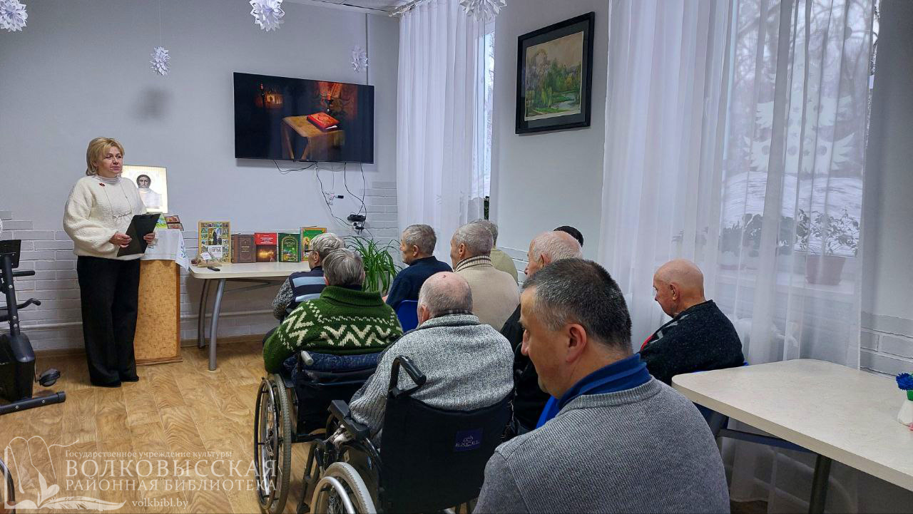Рождество – самый радостный праздник. Как гласит старая поговорка, Рождество – не время года, а состояние души. 8 января, в рамках областного библиотечного проекта для пожилых «Вместе с книгой дорогою добра», состоялась встреча «Свет Рождества Христова» с проживающими в пансионате Теолин. Библиотекарь познакомила присутствующих с историей праздника. Слушатели отвечали на вопросы викторины, смотрели видео, просматривали тематическую литературу. В заключении мероприятия каждый вытягивал записку с пожеланиями на Новый год и Рождество.