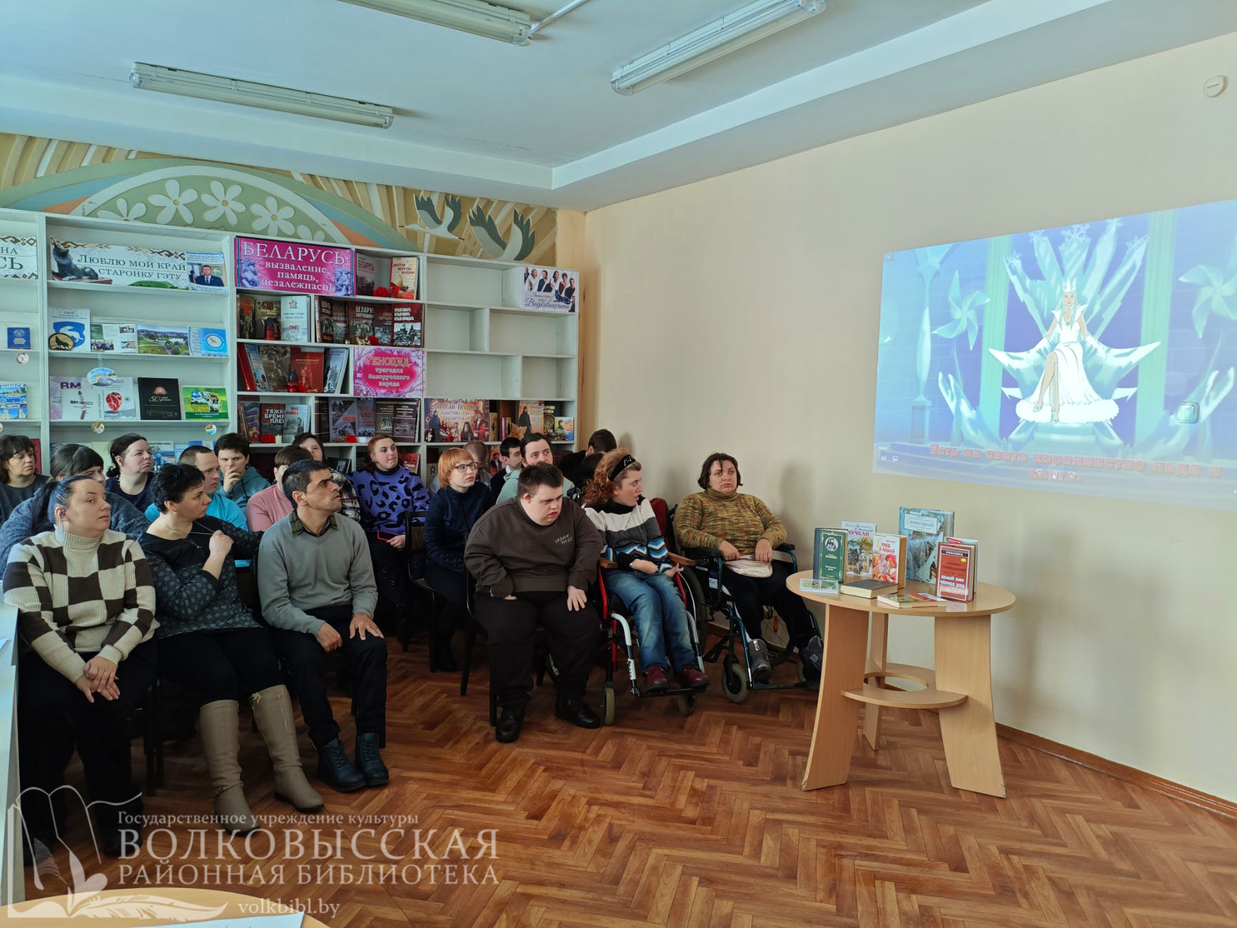 10 февраля в Волковысской районной библиотеке прошёл час библиотерапии «Милосердие на книжной полке» с подопечными отделения социальной реабилитации, абилитации инвалидов ТЦСОН Волковысского района. Библиотекарь Черницкая А.А. совместно с гостями раскрыла определение, что такое милосердие, рассказала о роли милосердия, доброты в жизни каждого человека и о том, что именно книга открывает для читателя окно в мир доброты и сопереживания. В ходе мероприятия определяли поучительный характер некоторых произведений, таких как «Чучело» В. Железнякова, «Капитанская дочка» А. Пушкина, и др. Посмотрели мультфильм по сказке Ханса Кристиана Андерсена «Снежная королева» и сюжет фильма по произведению Троепольского Г. Н. «Белый Бим черное ухо» и обсудили тему милосердия, доброты.