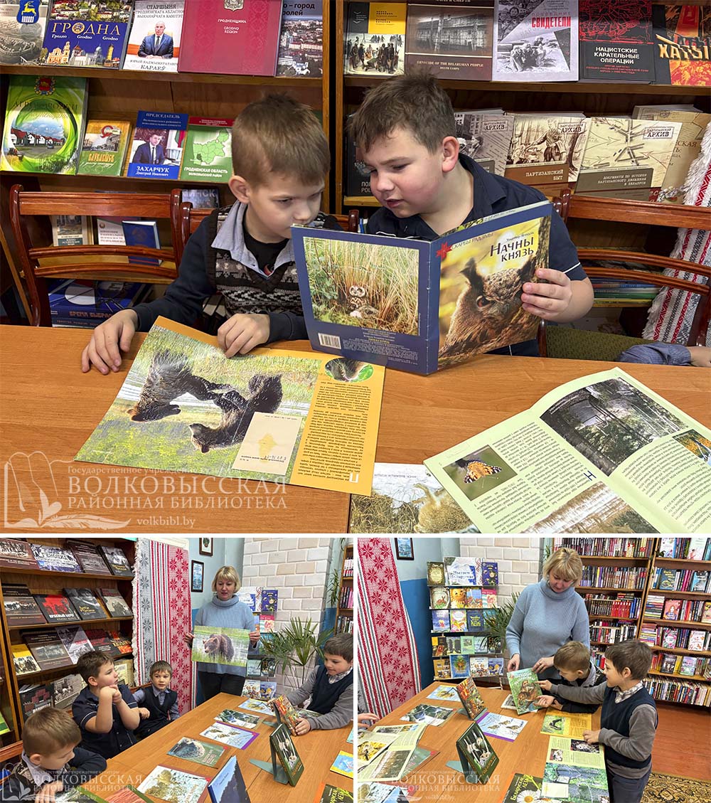 Бібліятэкар расказала дзецям пра жыццё і творчасць пісьменніка, пазнаёміла з яго выдатнымі творамі пра родную прыроду, пра гістарычнае мінулае Беларусі, здзейсніўшы падарожжа па кнігах “На далонях вечнасці”, “Свята летаўца”, “Лясныя таямніцы”, “Птушкі побач з намі”, “Па слядах ваўка”, “Нацыянальныя паркі і запаведнікі Беларусі”, “Сіні калодзеж”, “Год – карагод”. Вучні даведаліся пра тое, якія кветкі, ягады, грыбы растуць у Беларусі, пра птушак і жывёл, якія жывуць у нашых краях. Дзеці з задавальненнем адказвалі на пытанні экалагічнай гульні-віктарыны "Жывёлы роднага краю", адгадвалі загадкі і збіралі прыказкі аб зімовых месяцах.