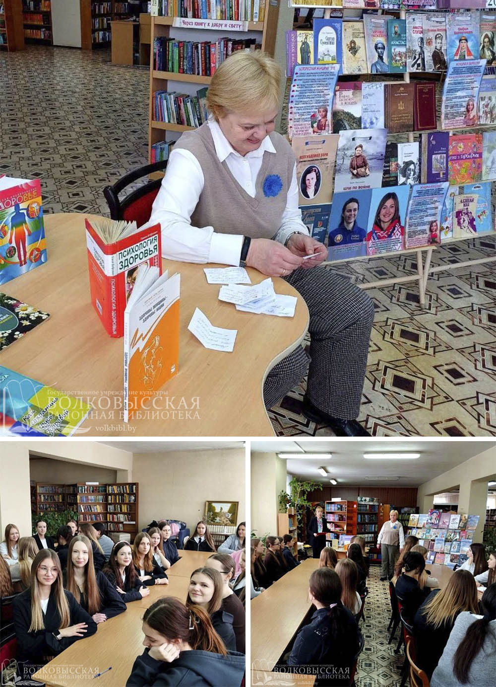 26 февраля в филиале «Городская библиотека №46», в рамках проекта «Женщины.bу», для учащихся 10-х классов СШ №7 г. Волковыска состоялся час информации «Здоровая женщина – здоровая нация» с участием заведующего женской консультацией УЗ «Волковысская ЦРБ» Запасник Елены Михайловны.