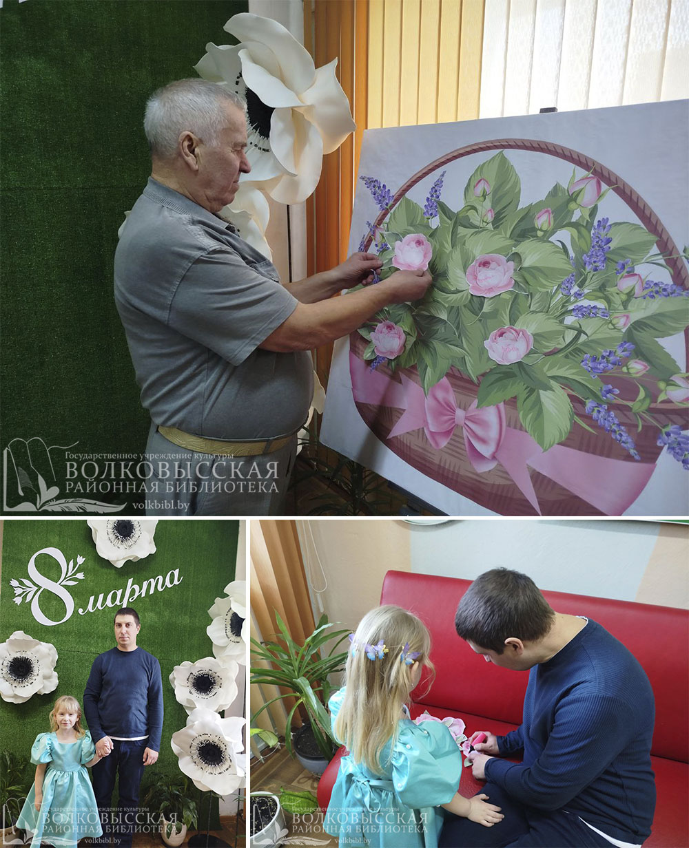 В этот предпраздничный день в фойе библиотеки была установлена большая, нарядная корзина. Читателей пригласили принять участие в создании особенного «букета», прикрепив к корзине цветы. Каждый цветок символизировал теплое пожелание, добрые слова и признательность всем женщинам, а также самой библиотеке, как центру культурной жизни.