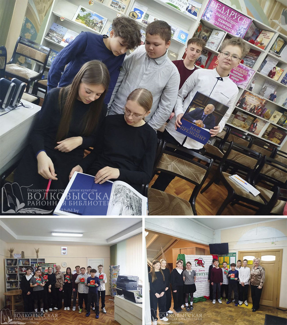 12 марта в рамках проекта «Подросток и закон: правовые знания» в Волковысской районной библиотеке прошел открытый диалог «Конституция – Основной Закон государства». На мероприятии присутствовали учащиеся 8 класса СШ №3 г. Волковыска.