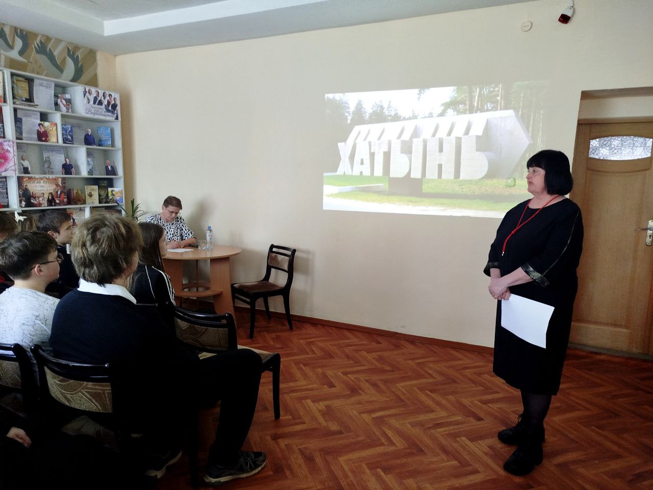 Были просмотрены хроника-документальный фильм «И будет жить Хатынь», отрывок из художественного фильма «Иди и смотри». В конце встречи ребята почтили память погибших минутой молчания.