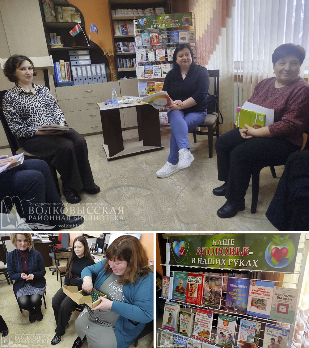 7 апреля, во Всемирный день здоровья, в районной библиотеке прошла беседа-тренинг «Женщина и здоровье: баланс и забота» с участием педагога-психолога ГУО «Гимназия №1 имени Т.А.Гриченка г.Волковыска» Сонец Светланы Николаевны. Светлана Николаевна провела с присутствующими занятие-тренинг, который был направлен на понимание себя, своих потребностей, реакций; формирование принятия себя, позитивного самоотношения.